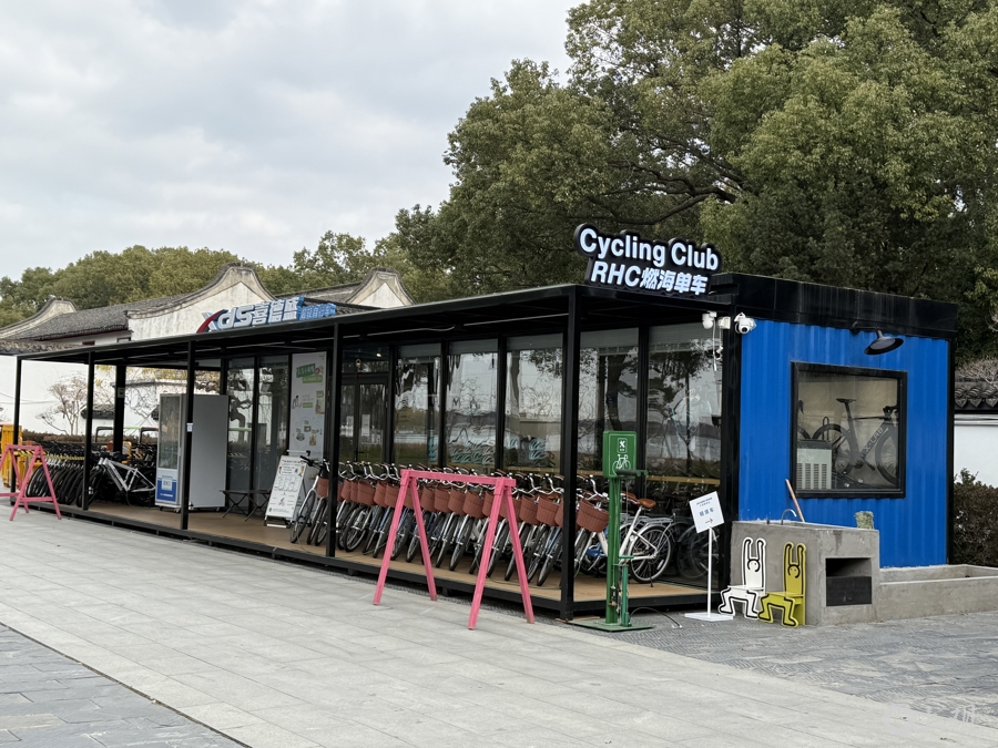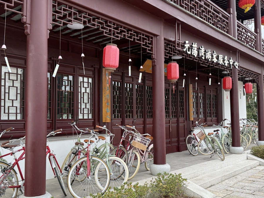 元荡生态岸线江苏吴江段的自行车租赁点。