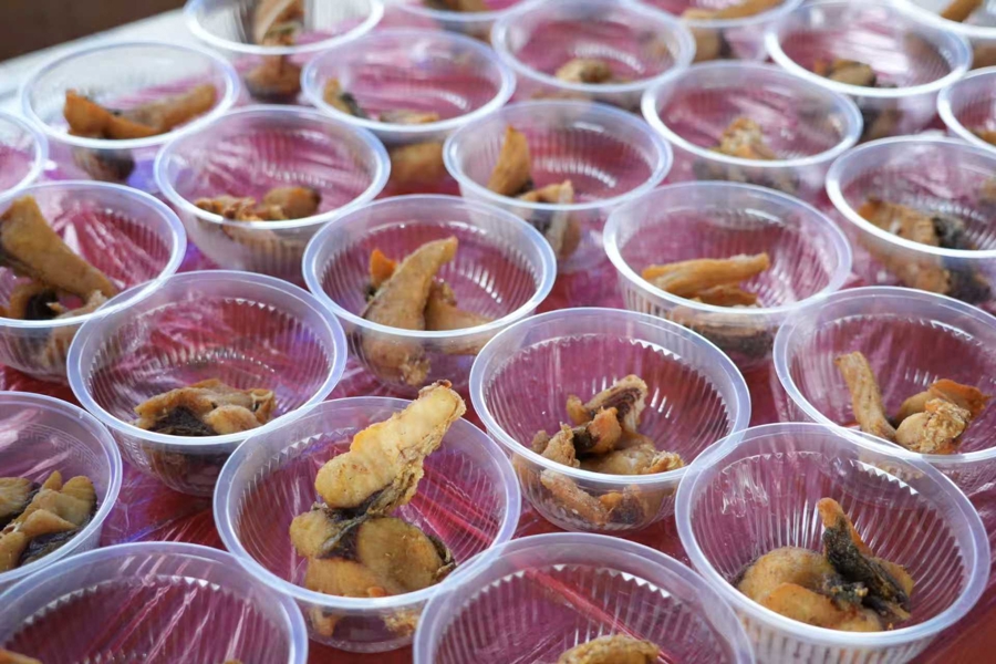 捕获鲜鱼后,活动方贴心提供了免费杀鱼服务,由6名专业工作人员组成团队,为参与者进行标准化、卫生化的处理,也有不少家庭选择直接将活鱼带回家。