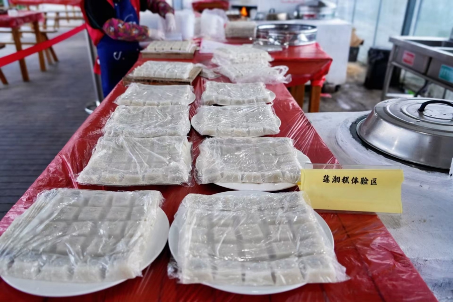 玩得开心,也要吃得满足。活动现场特邀廊下“菜饭阿婆”李菊观的徒弟,携手资深乡土厨师为大家带来了一场味蕾盛宴。参与者不仅尝到了鲜掉眉毛的酥炸爆鱼、手工制作的红糖小圆子,还亲手体验了制作廊下特色“莲湘糕”的乐趣,并享用了一碗碗热气腾腾的“廊下菜饭”。