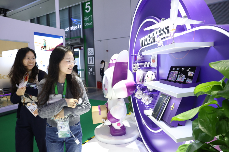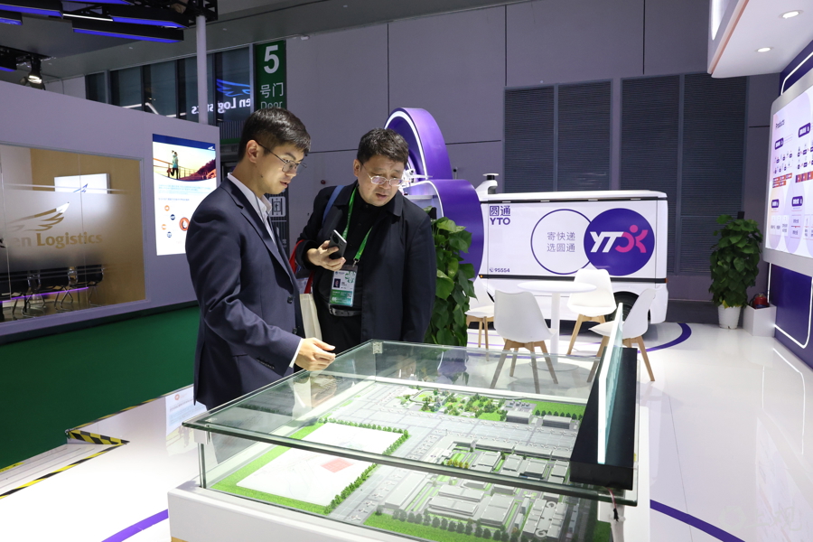 圆通展台中央,其全球航空物流枢纽“东方天地港”的沙盘模型引发中外客商关注。这座位于浙江嘉兴、占地1500亩的枢纽将于年底启用。