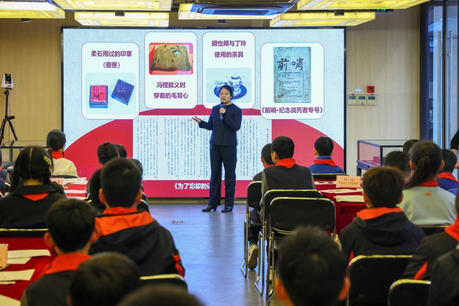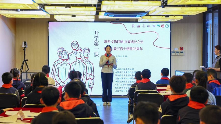 3月1日,一场别开生面的“开学第一课”在中共四大纪念馆拉开帷幕 。来自上海市虹口区四川北路第一小学的学生及“鲁迅小道囡囡讲”志愿者等40名少年化身“时光代言人”,通过沉浸式研学与角色扮演,跨越95年的时空长河,与“左联五烈士”展开了一场心灵对话 。